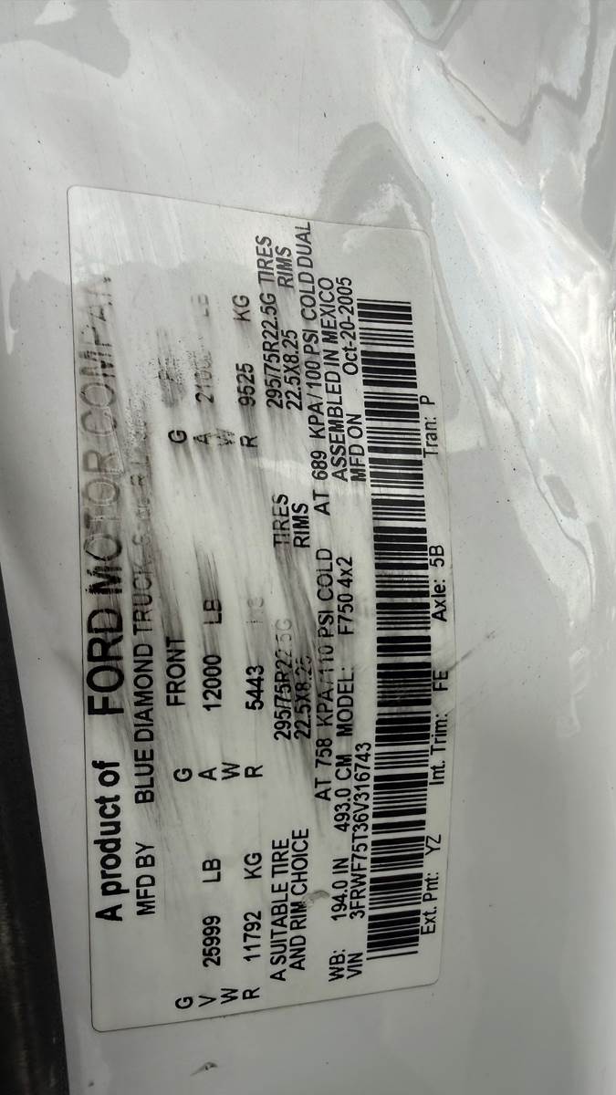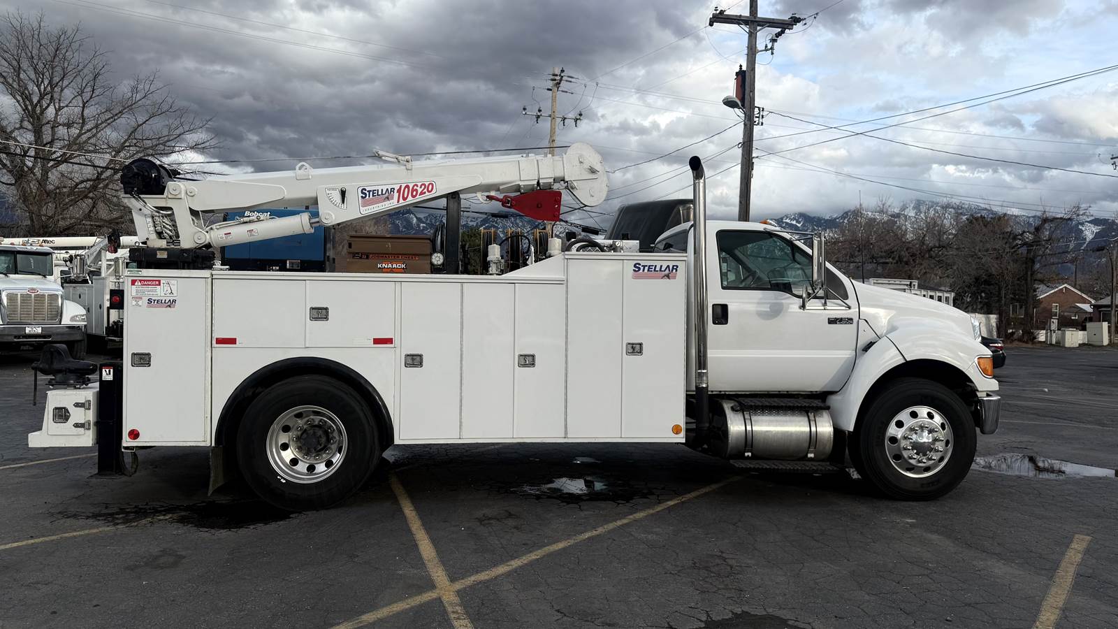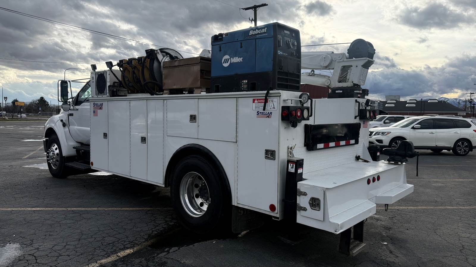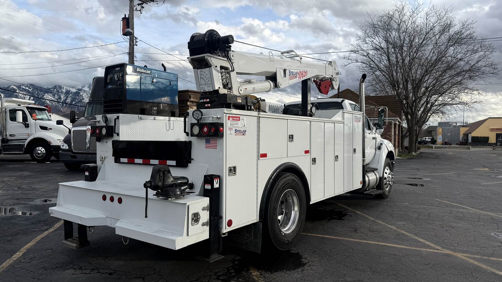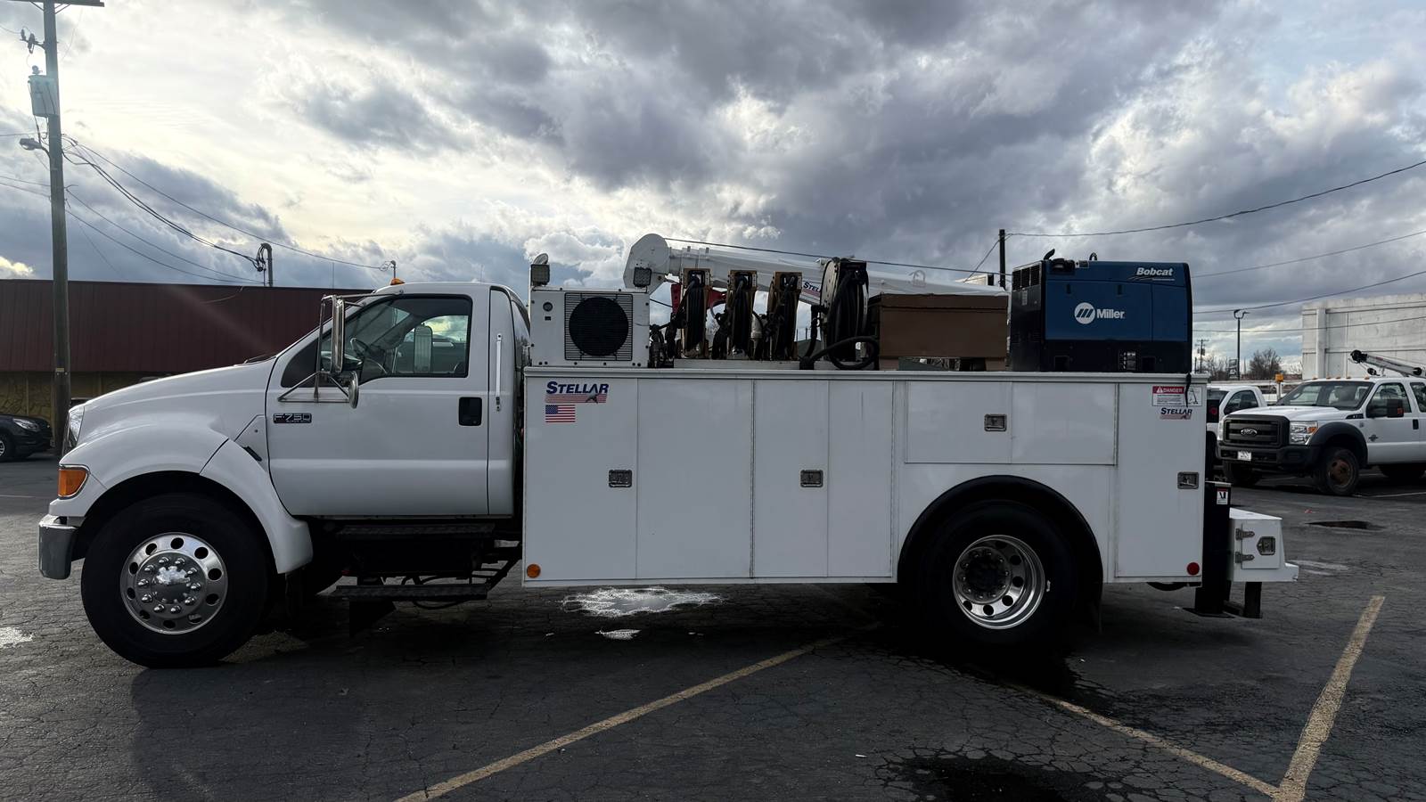 AVAILABLE NOW! 2006 F750 XL, with C-7 CAT and a 6-sp manual transmission, great condition. Stellar 10620 crane 3 Product tanks with pumps and reels, an evac system, Ingersol Rand Hydraulic air compressor, Miller Bob cat 260 welder with leads, Right hand vertical stack, AM/FM/ CD player radio. Aluminum wheels, Michelan tires 75%, Aluminum Fuel tank 50 GLS. Hydraulic out riggers, rear work bench with Vise, air Hose reel. Chrome grill and front bumper. LED Lighting all around.