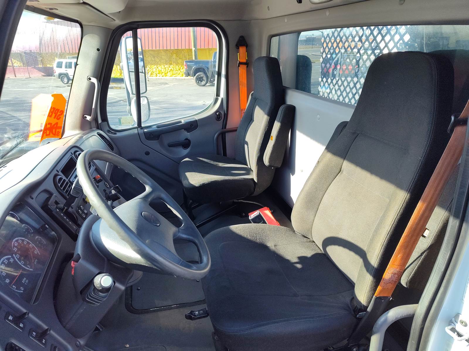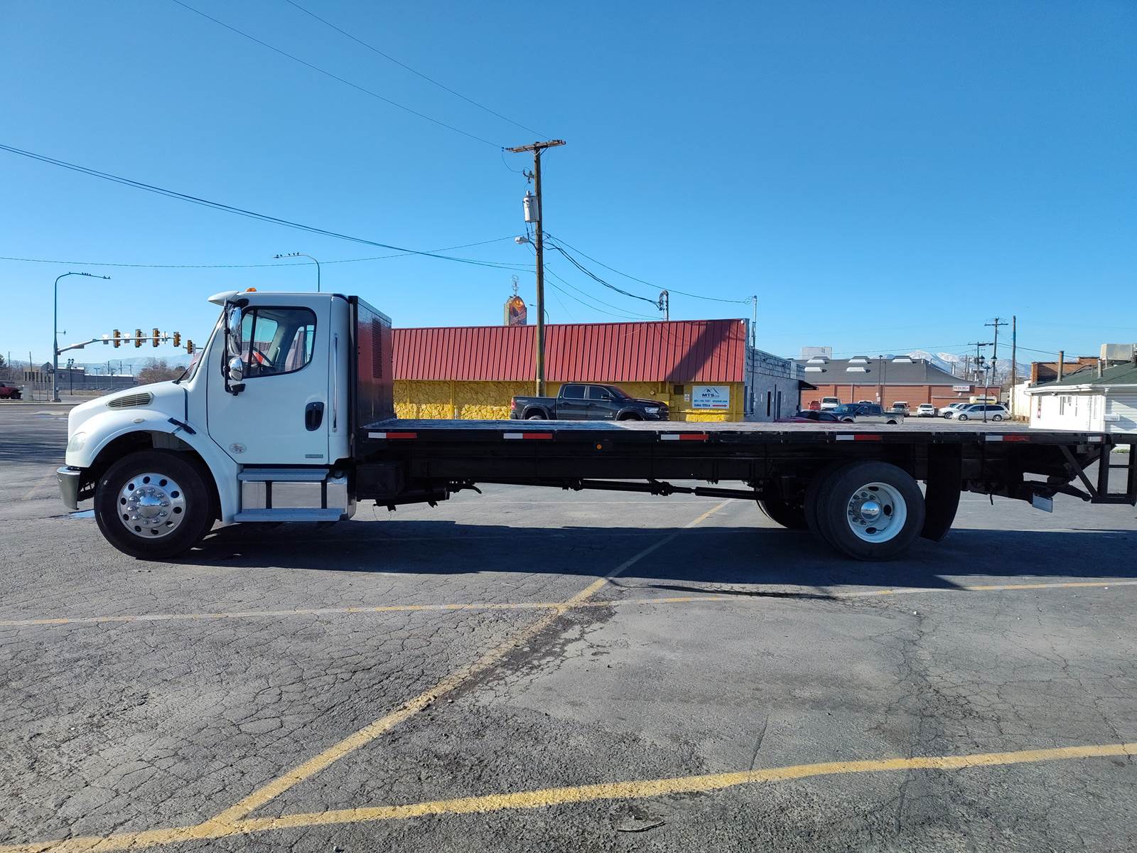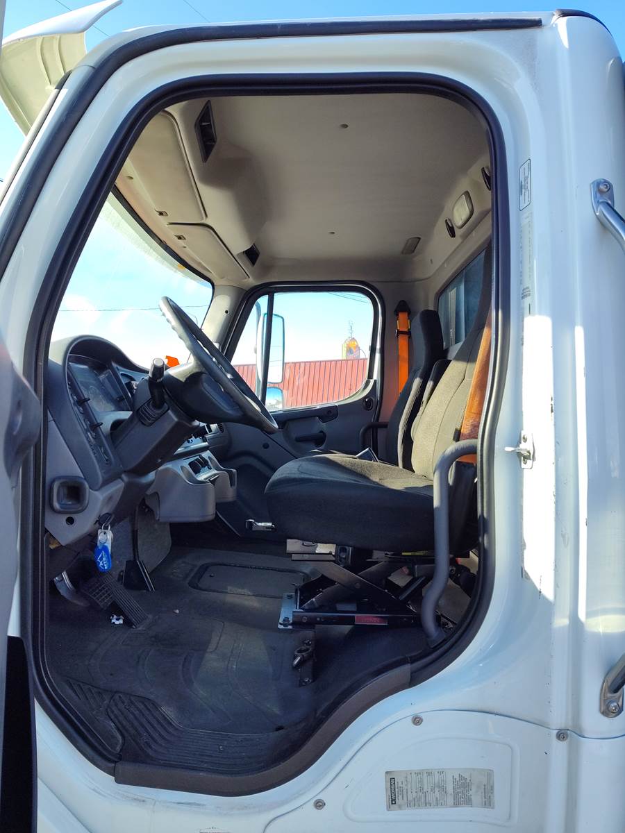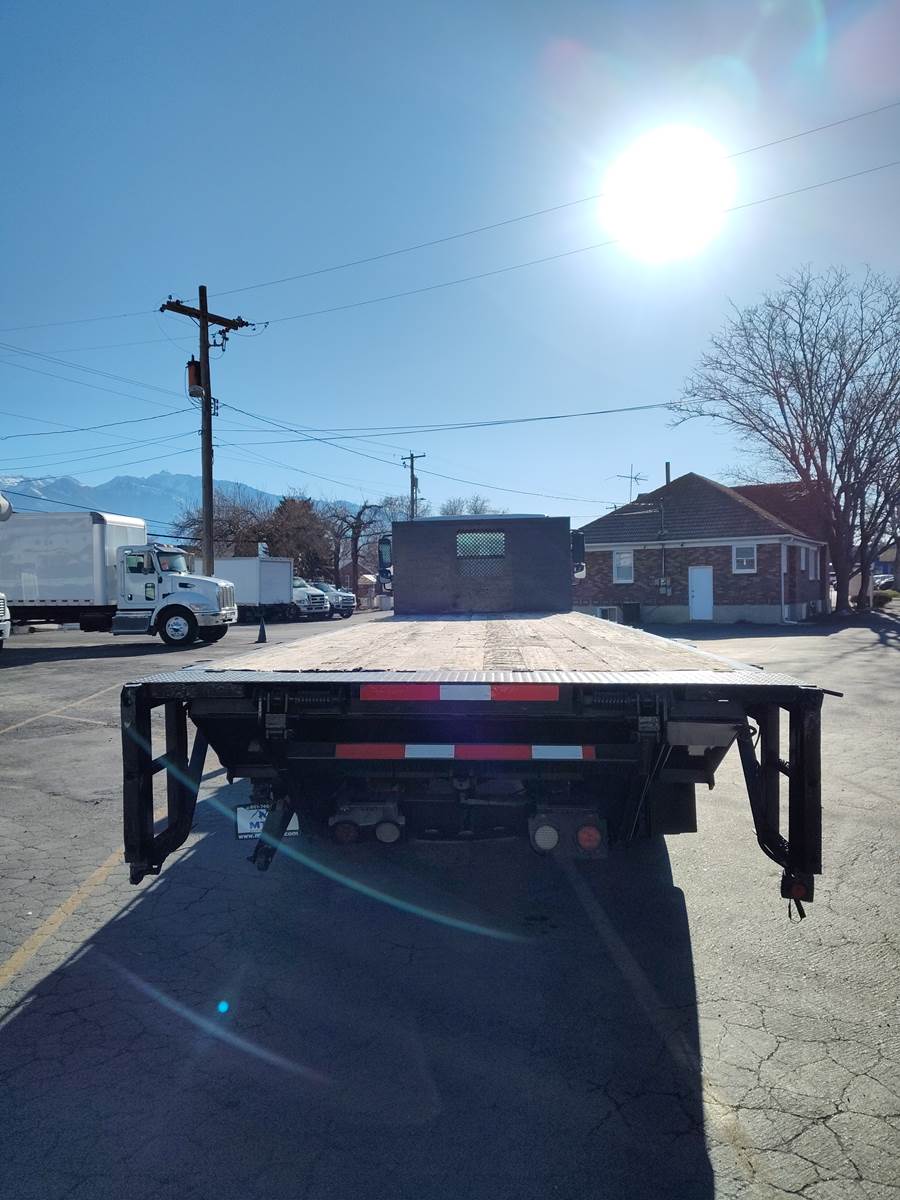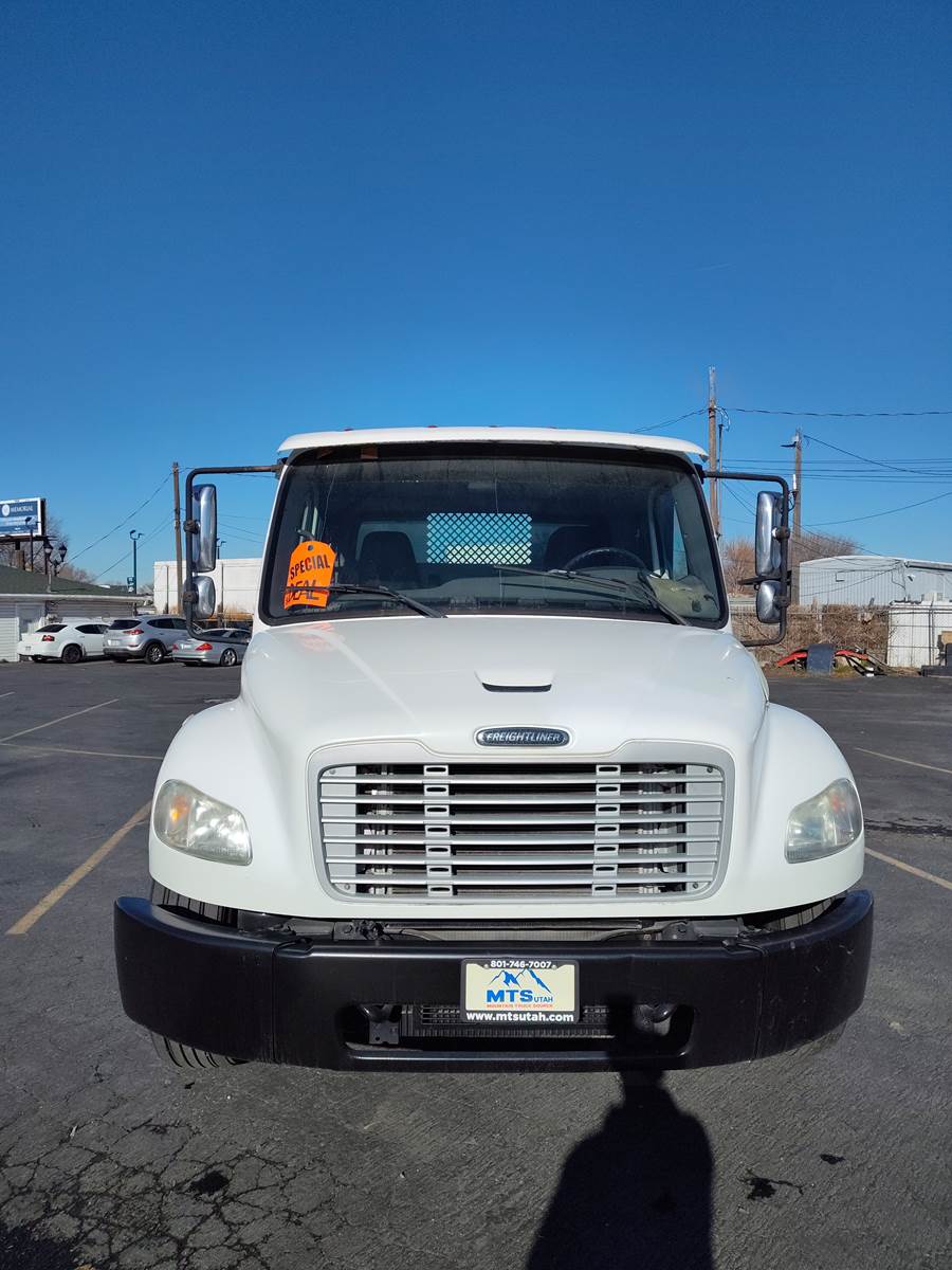 This is a 2011 Freightliner M2106 with a 24-foot long flatbed and a platform liftgate is available. Equipped with Cummins ISB 6.7 L engine. It has an Allison Automatic transmission (2100 HS) with Overdrive. 240 HP New radiator, DPF, Diesel, Aluminum fuel tank 50 gallon, Steel frame, Sun visors, Power steering, Power locks, Power windows, AM/FM/CD Stereo & Speakers, Grab Handles, Rearview mirrors w/ convex, Comfortable adjustable drivers and Passenger seat, Air-Brakes, Spring Suspension, 5.29 ratio, 268" WB, Front axle 10,000 lb., Rear axle 21,000 lb., and a 26,000 lb. GVWR. It is also equipped with great rubber (size 11R22.5) and Aluminium fronts / Steel wheels rears, and has fresh paint on the flatbed. Fresh rebuilt engine - Diesel. This truck is competitively priced for a quick sale!