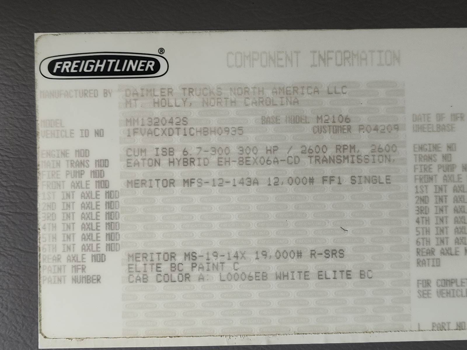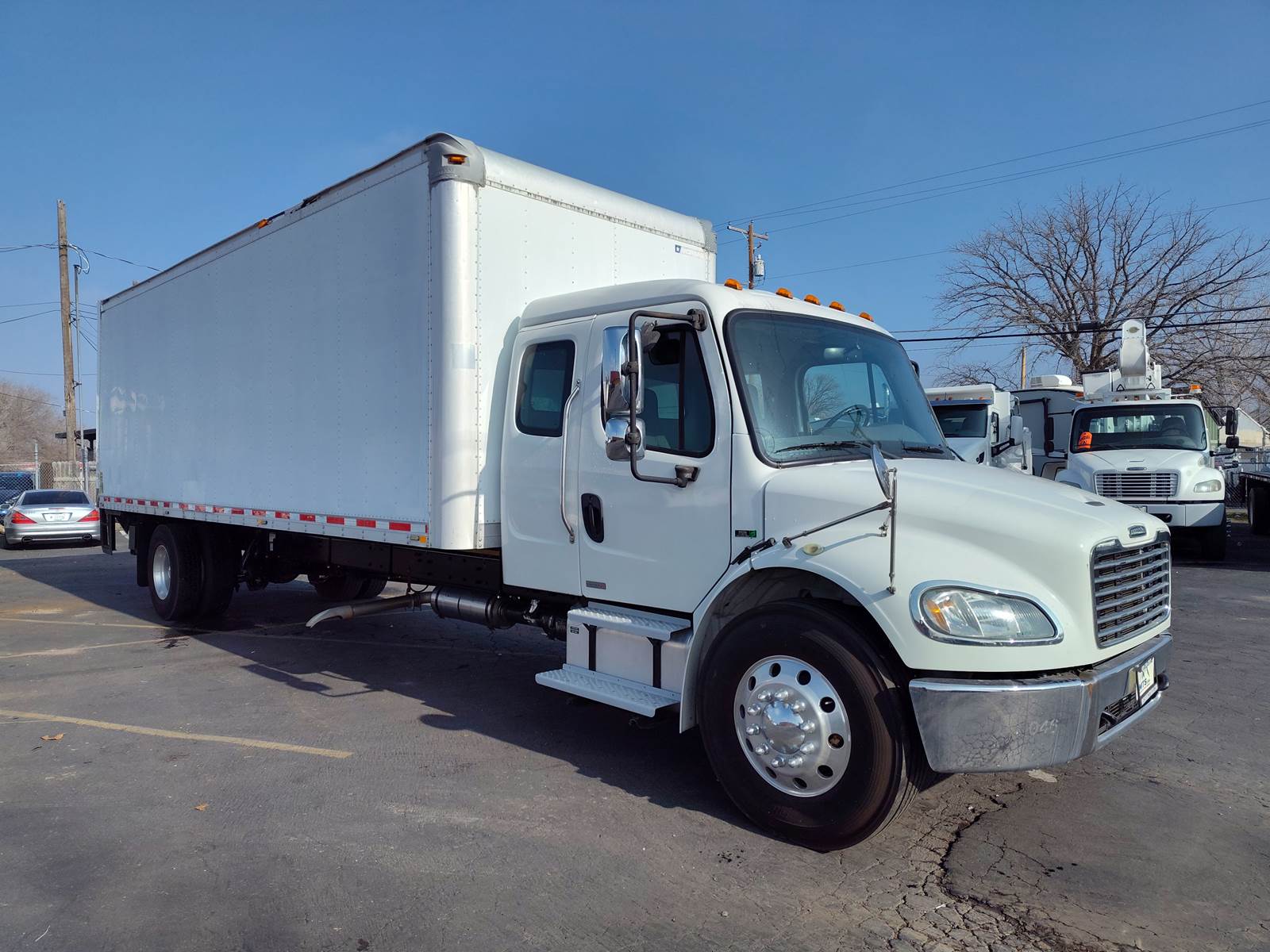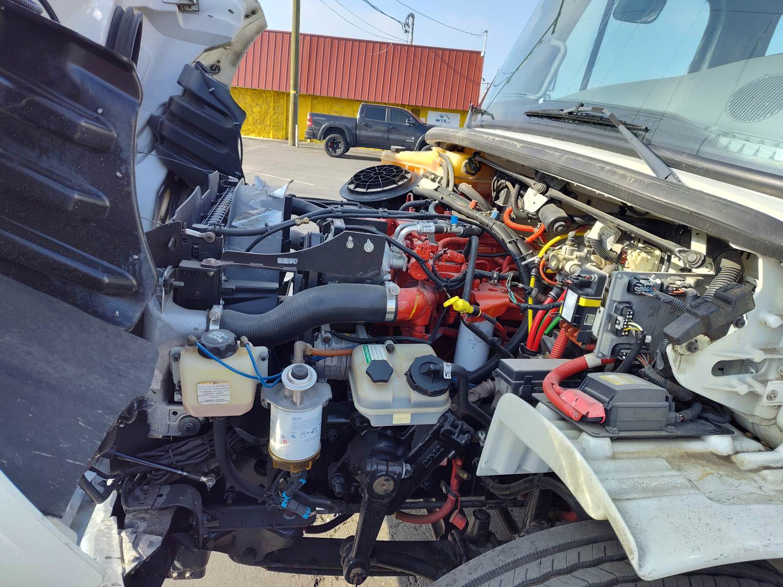 This Extended cab and it's an immaculate truck. Cummins ISB 6.7 ltr. engine, 300 H.P. diesel, - Eaton Fuller Automatic Trans., 5.57 ratio, (2) 50 GLS Aluminum fuel tanks with steps, grab handles, Certified Clean idle, 4x2, Air-ride driver seat, Clean interior, 2 seater, DEF/DPF, (6) 11RX22.5 tires, Aluminum outers on wheels, Air Conditioning, Cruise Control, Power Locks, AM/FM/CD radio, interior sun visors, rearview mirror with convex and site mirror on hood, (2) Chrome bumper, chrome bezel headlights, Convex mirrors Chrome grill, Hours 2,219.9, Idle time 449.56, mud flaps, tail lights, double frame, leaf-air suspension. 321" W.B., 12,000 lbs front axle, 19,000 lbs. rear axle, 31,000 lbs. G.V.W. 26' Box with an aluminum lift gate, Translucent roof, Great moving truck.