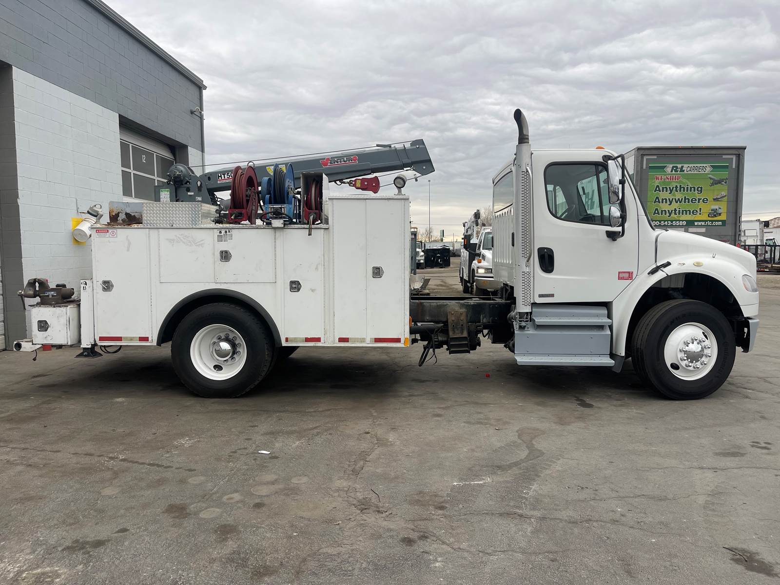 This 2012 Freightliner M2 106 comes with Cummins ISB 6.7 L and an Allison Automatic transmission, Diff lock DPF/DEF. Aluminum Fuel tank. Like new steer tires.11R22.5 and 60% on the rear. Spring suspension. Trailer brake Pintal hitch with air lines and 7 way electrical. Right hand vertical stack. 12,000 front and 21,000 rear axle 33,000 G.V.W.R., 5.38 Ratio. a 14' service body and plenty of storage. Call or come by for a test drive.