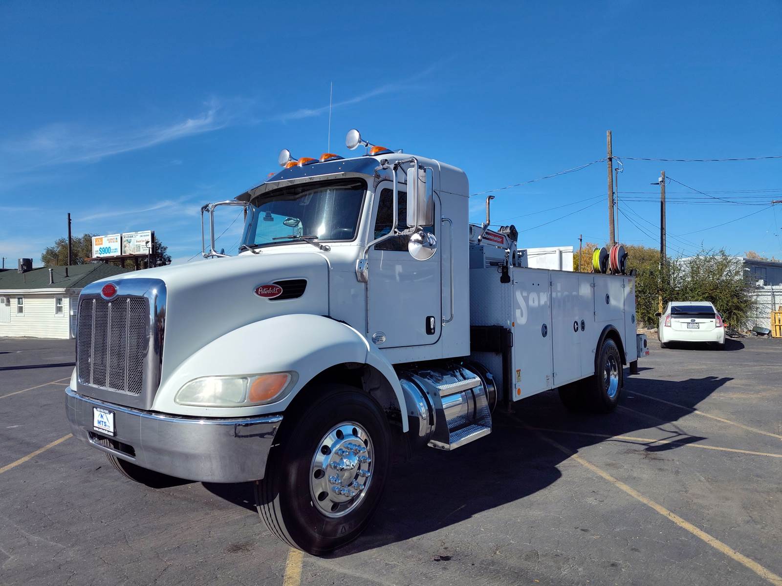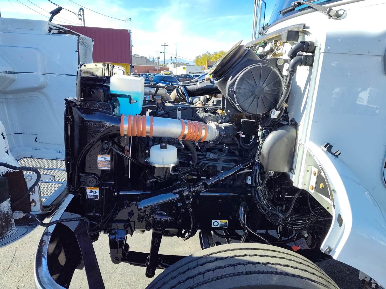 A fabulous mechanics truck for sale! This truck has an Extended Conventional Cab, 8.9L Cummins engine, and 10-speed manual trans. (FRO11210C), 4.30 Ratio, Air-ride driver's seat / sturdy passenger, Power steering, Back up camera (AM/FM/CD/CB w/ Aux Blue tooth), Diff-lock, Air-lief, Jake brake, Air dump valve, Tilt steering wheel, Gauges, Sun Visor, Air horns, Stainless Steel mirrors / Heated Mirrors - with Convex, Spot Mirrors, R. H. sight & rear windows, Cup holders, A/C -heat, floor mats, R.H. Vertical exhaust, Battery Kill Switch, Full Air "S" Cam breaks, Front tires (2) 1100x22.5 14 ply highway (80%), Rear tires (4) 1100x22.5 14 ply M&S (70%), (4) Aluminum Wheels 11RX22.5, (1) Spare tire & wheel, Spring suspension w/ Aux, Front axle 10,000 lbs. (Rockwell), Rear axle 23,000 lb - Dana Splicer (S23-170), G.V.W. 33,000 lbs.