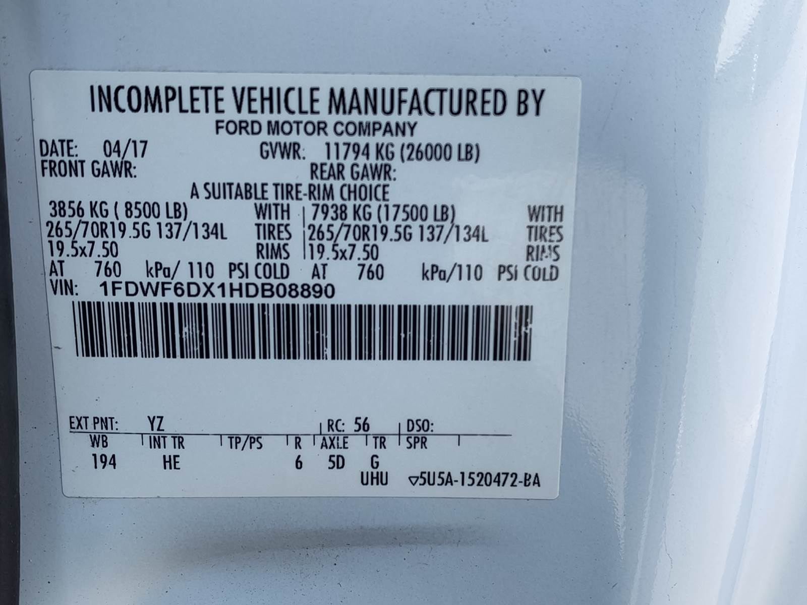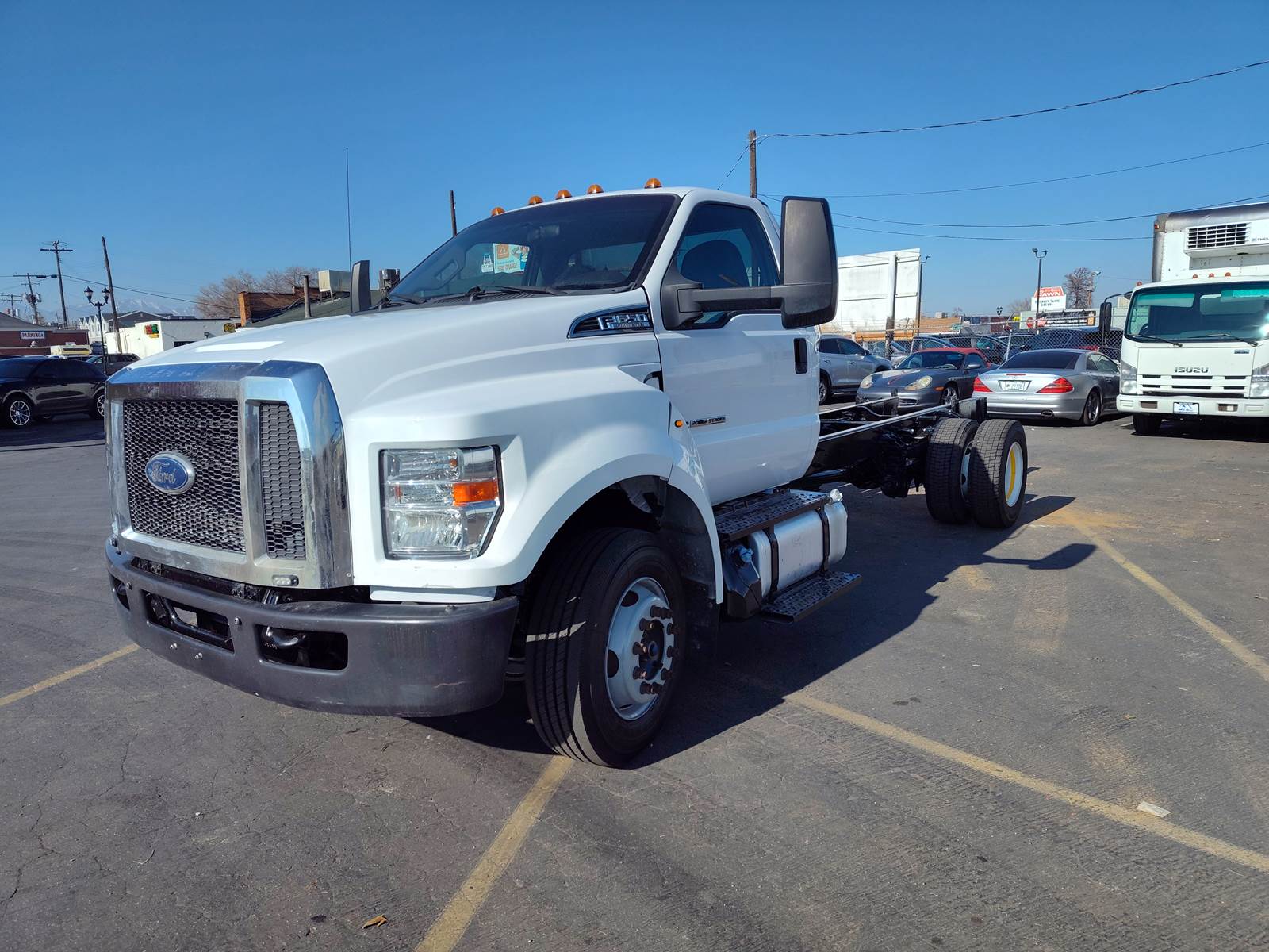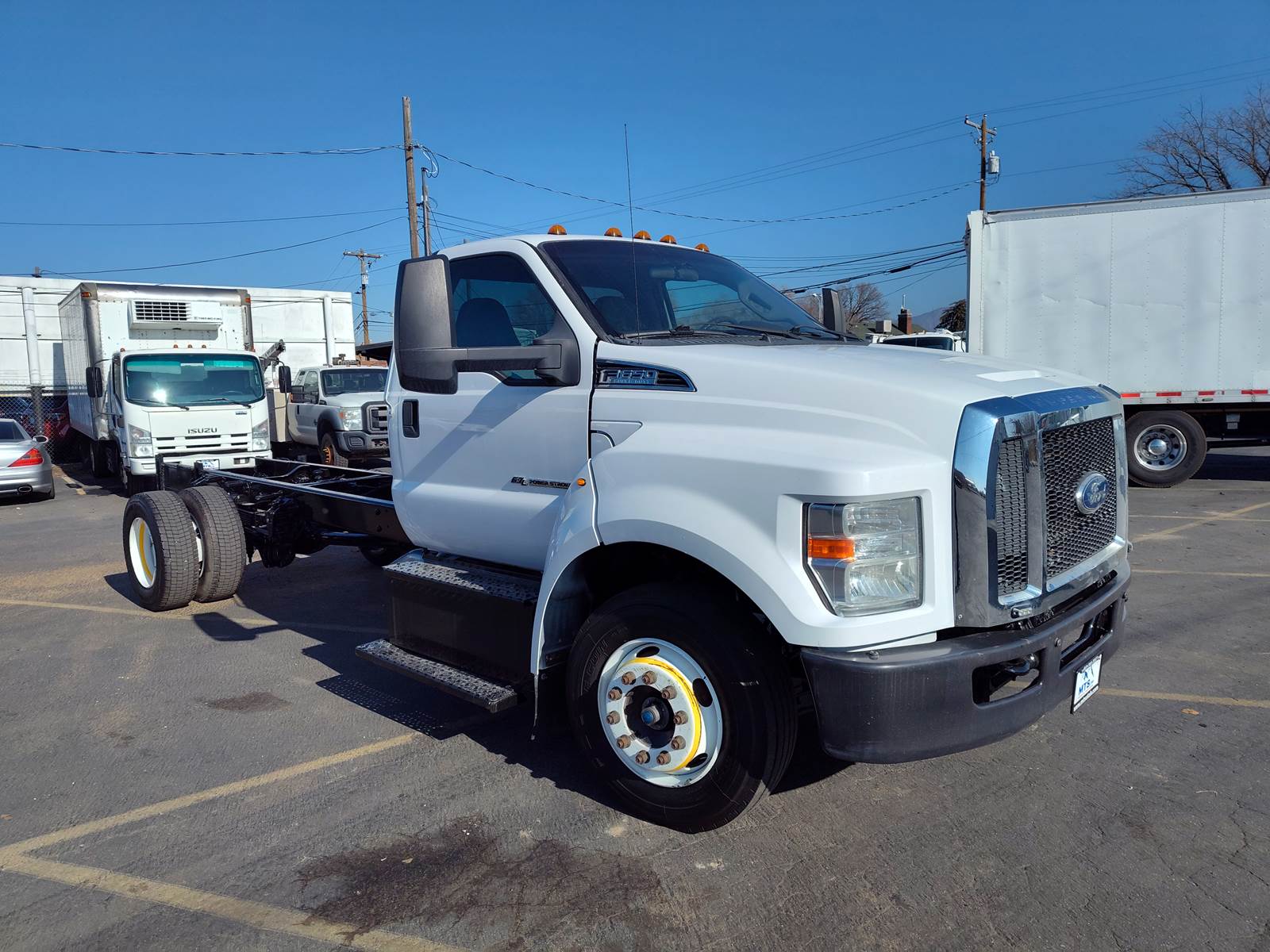 Just in a LOW MILES 2017 Ford F650, 6.7 L. Turbo Diesel Power Stroke, 330 H.P. Automatic transmission, 3.73 Ratio. DPF DEF. Exhaust Brake. Power Steering, Power windows, Power Locks, and Power Mirrors, Air ride seat Driver side, and a bench seat on the passenger side. AM/FM/CD MP3 Player Radio, 192 W.B. and 120 C.A. Aluminum Fuel Tank. 8,500 lb Front Axle, 17,500 Rear axle, 26,000 G.V.W.R. Spring Suspension, Chrome Grill, Ready for a new out fit.