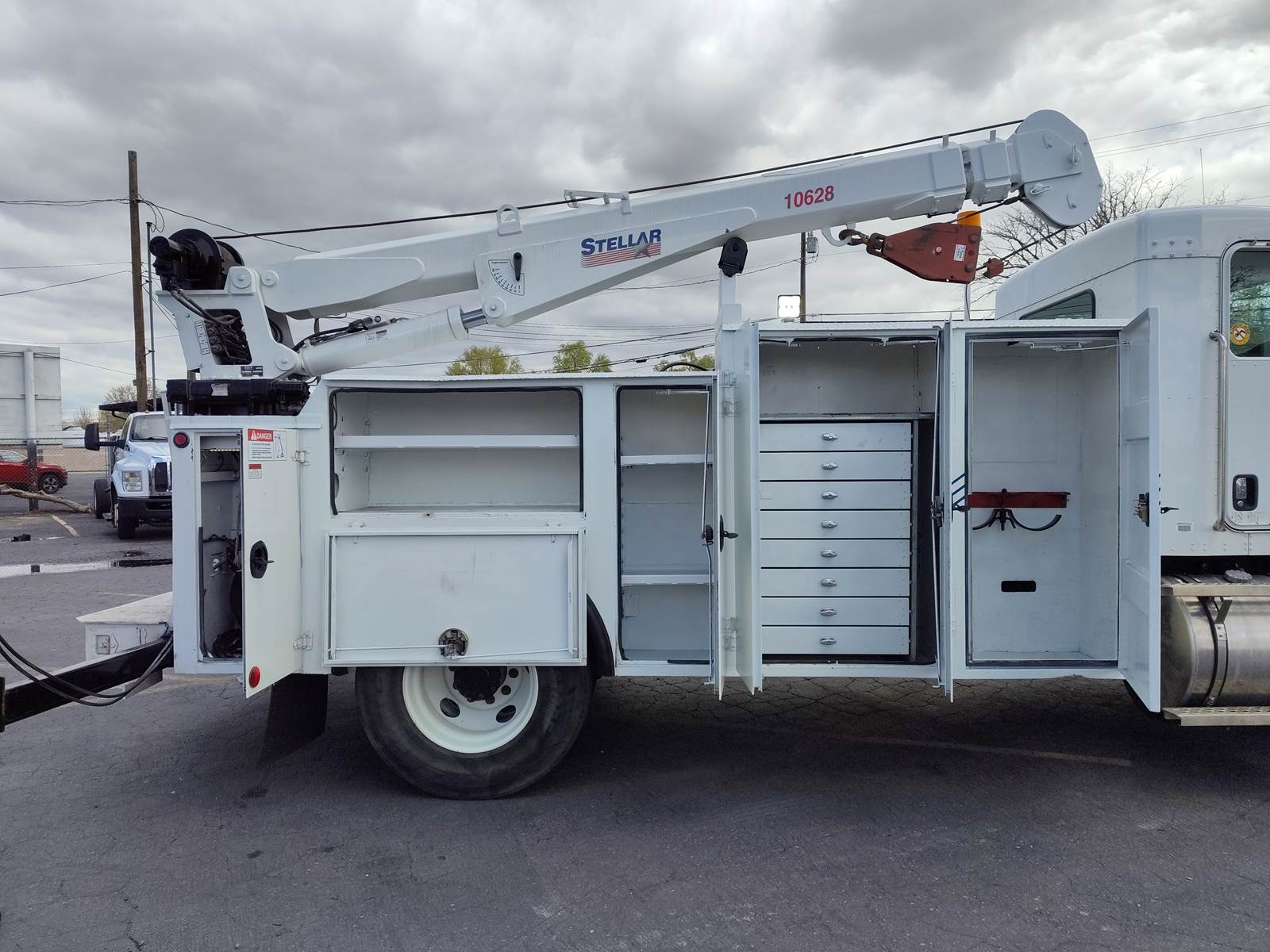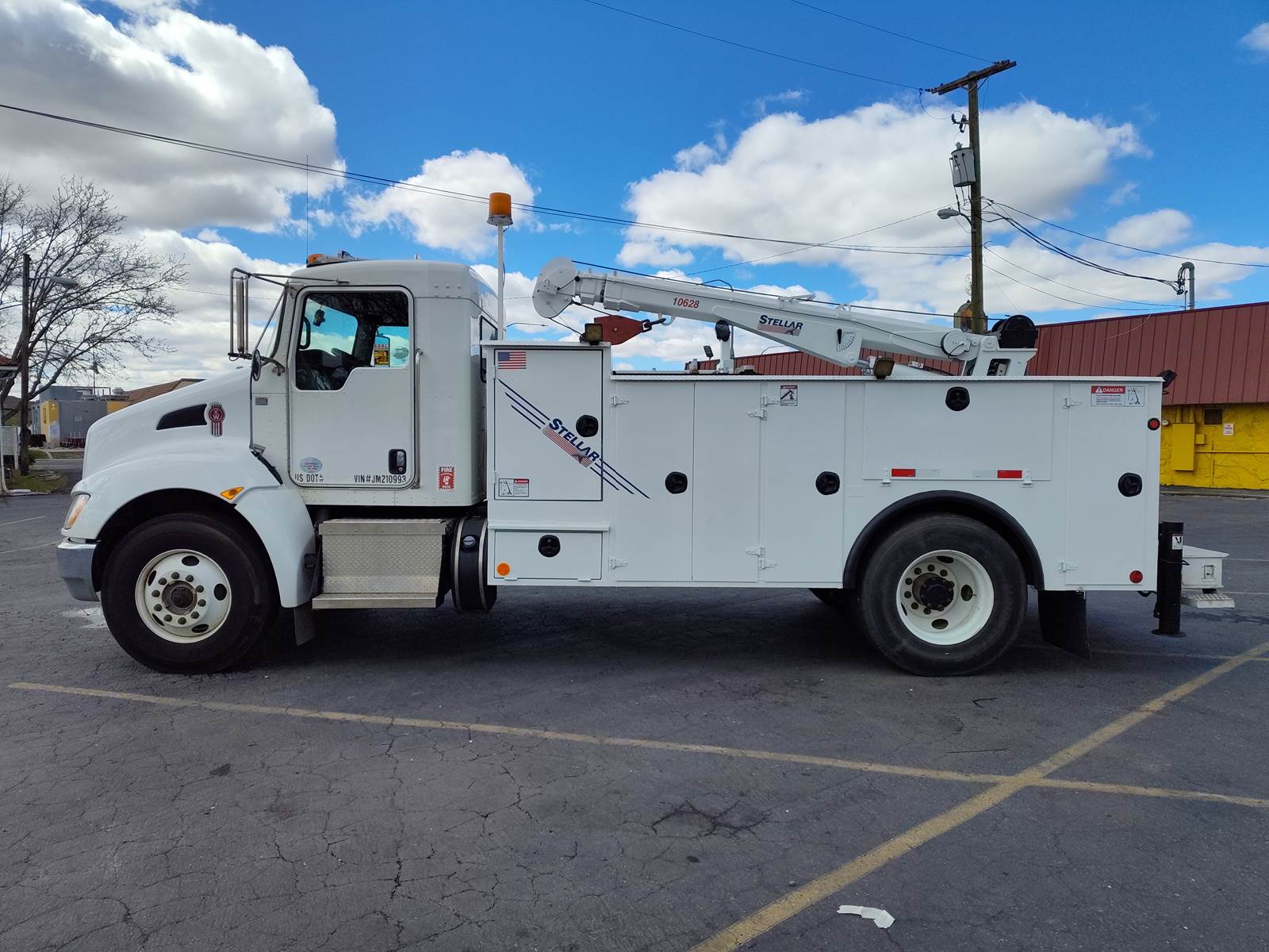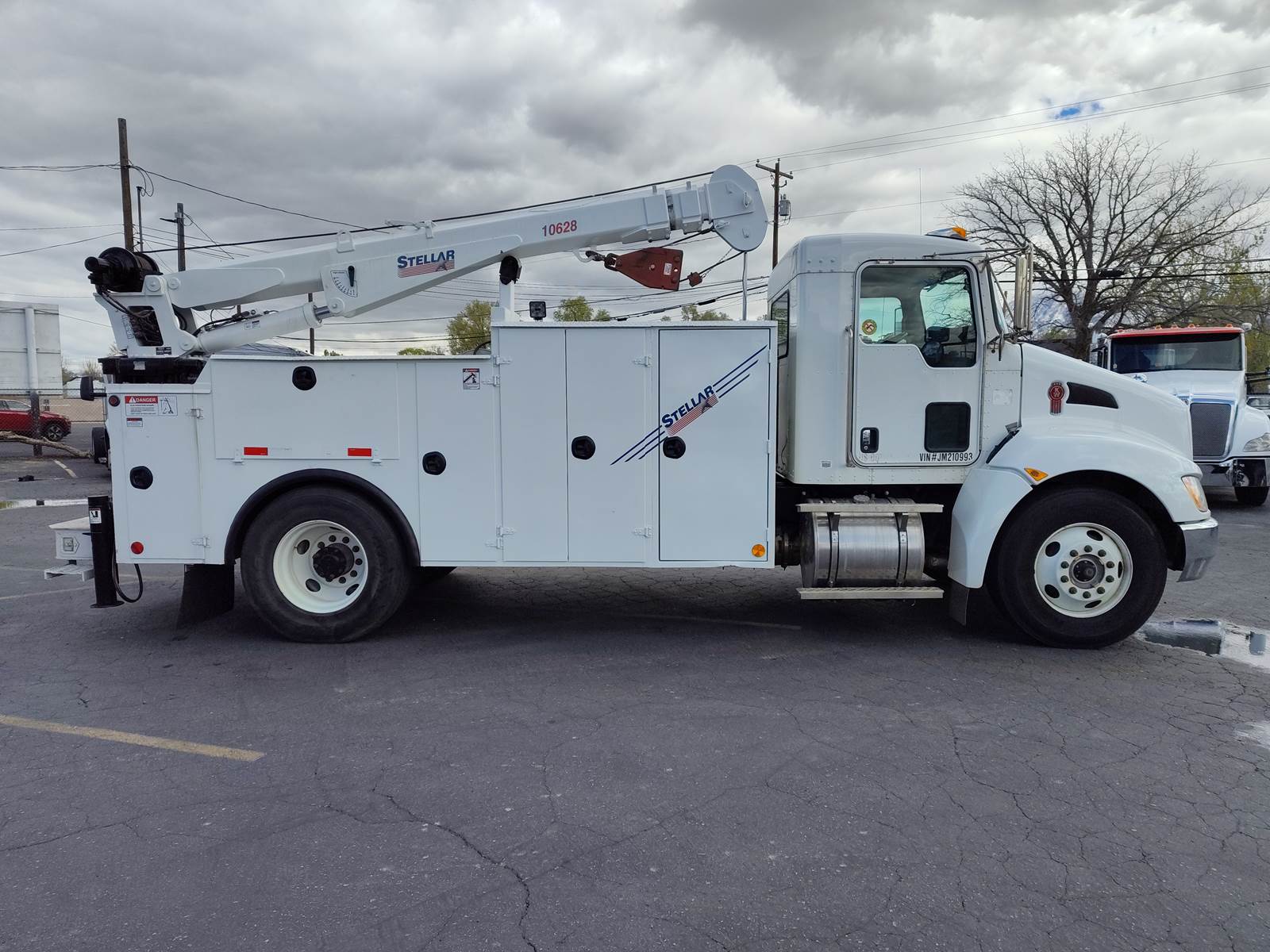 ****Just in a 2018 Kenworth T370 LOW MILES 55566 PX-9, 300 H.P. Allison Automatic transmission 3500RDS, 12,000 Front 21,000 Rear, 33,000 G.V.W.R. Dana P22060S rear end, Air Brakes,5.57 Ratio, Power locks Power window Passenger side Power steering, Air ride seat Driver, Bench seat Passenger. Aluminum Fuel Tank DPF DEF. Chrome Grill and Bumper, AM/FM/CD player Bluetooth radio, 11R22.5 rubber. New PTO and Pump. 14 FT Stellar Body 10628 Crane, Multiple drawer sets, Bolt bin set. stellar 40P hydraulic air compressor, hydraulic outriggers. New remote and transmitter. LED work lights and Light srip for the compartment lights. Available lube system with 3 Product tanks and an evac system. Aftermarket warranty availabe, Ask your sales rep.