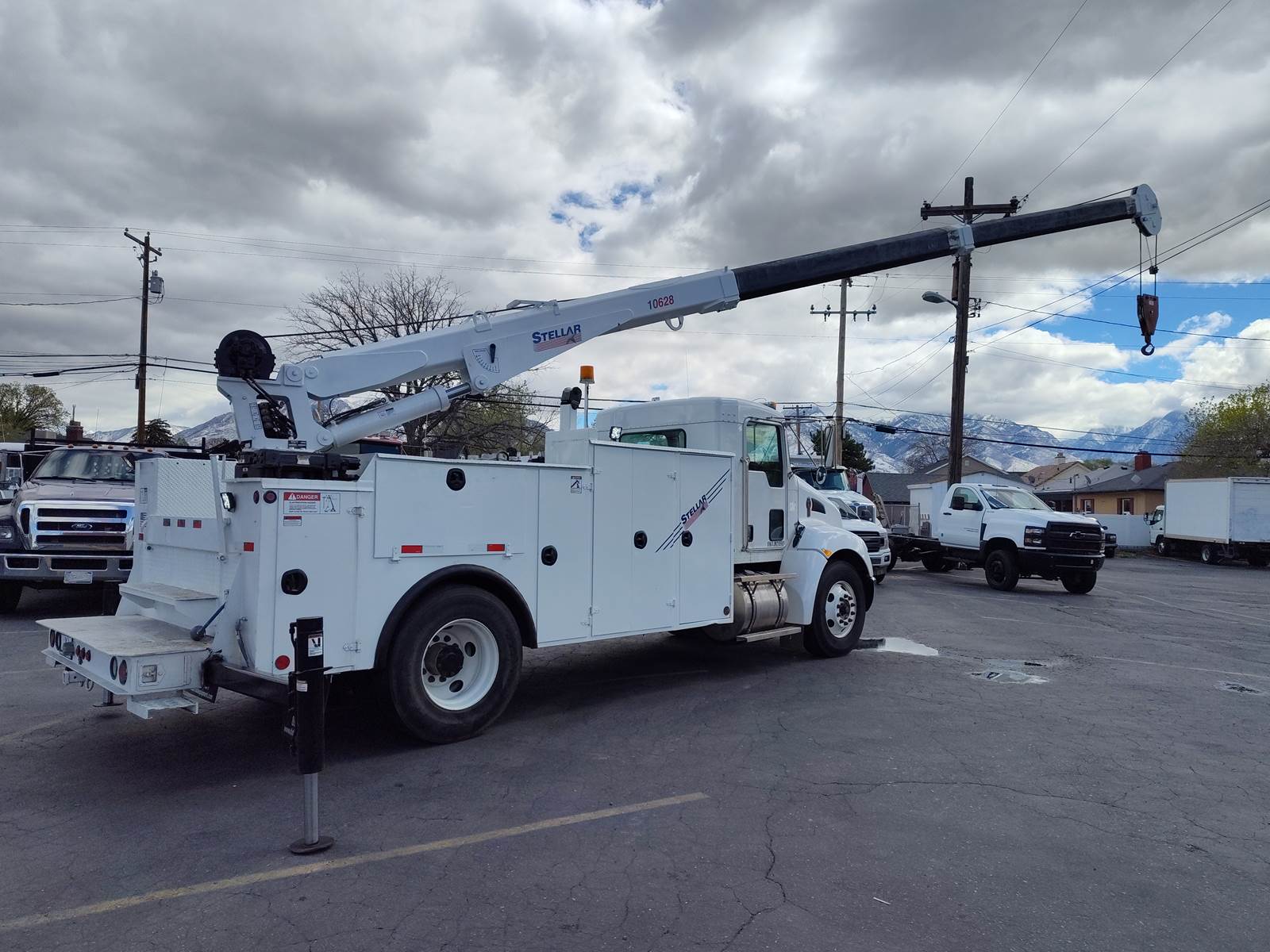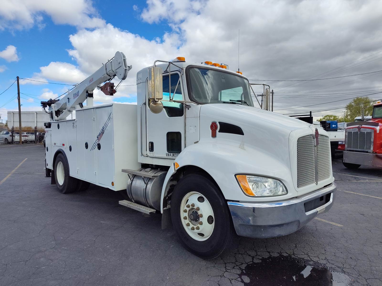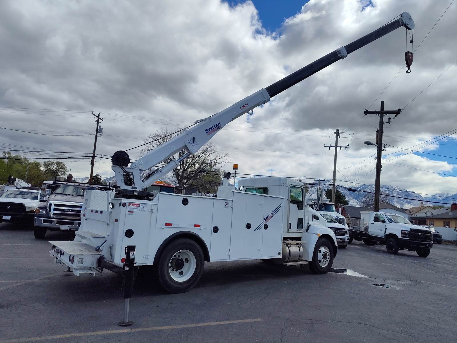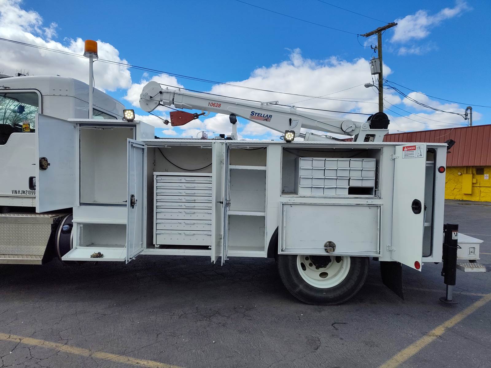 ****Just in a 2018 Kenworth T370 LOW MILES 55566 PX-9, 300 H.P. Allison Automatic transmission 3500RDS, 12,000 Front 21,000 Rear, 33,000 G.V.W.R. Dana P22060S rear end, Air Brakes,5.57 Ratio, Power locks Power window Passenger side Power steering, Air ride seat Driver, Bench seat Passenger. Aluminum Fuel Tank DPF DEF. Chrome Grill and Bumper, AM/FM/CD player Bluetooth radio, 11R22.5 rubber. New PTO and Pump. 14 FT Stellar Body 10628 Crane, Multiple drawer sets, Bolt bin set. stellar 40P hydraulic air compressor, hydraulic outriggers. New remote and transmitter. LED work lights and Light srip for the compartment lights. Available lube system with 3 Product tanks and an evac system. Aftermarket warranty availabe, Ask your sales rep.
