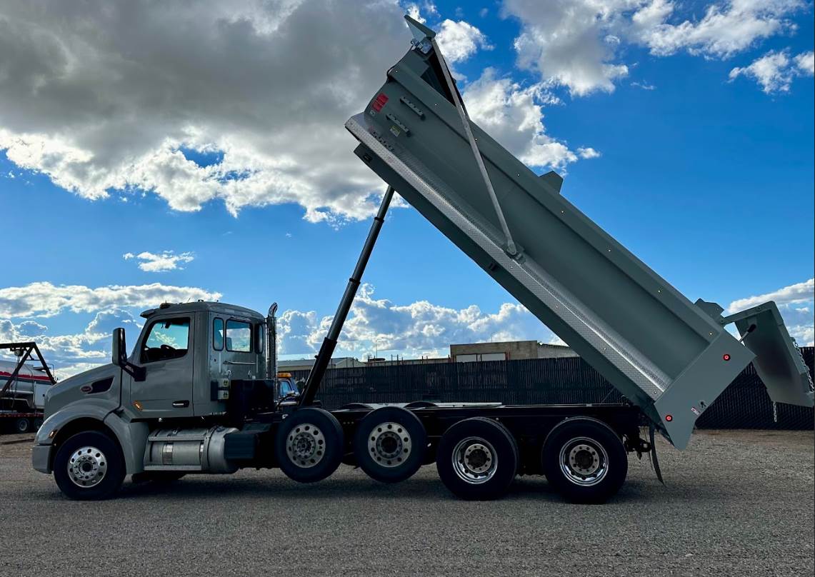 NEW 20' DUMP BODY HARDOX 450 w/ wear plate (Sides, Floor, Tail gate), NEW Frame - Steel reinforced for dump body, AMTEX Industry White Eliptical Dump Body, Subframe ***4X4"X3/16" Square Tubing, 1' Shorter than body length, with hinge system and multi-stage hydraulic cylander attached. Safety Features*** Ladder on driver's side, Full Fenrs, Tailgate System, Dual Gate System (High Lift / Conventional Operation), Lighting ***DOT - LED (4 RED tail/ brake/turn), (2) white reverse, & Clearance lights), Finish *** Powder Coat Primer and Light Grey Custom Paint on cab and dump body), Tarping System***Electrical Swing Arm a/ H.D. Mesh Tarp (Electrical Motor, Aluminum Arms, H.D. Electrical Cable and Switch), Cab Protector*** Set at 80" Clearance X 72" W for Double Stack.
