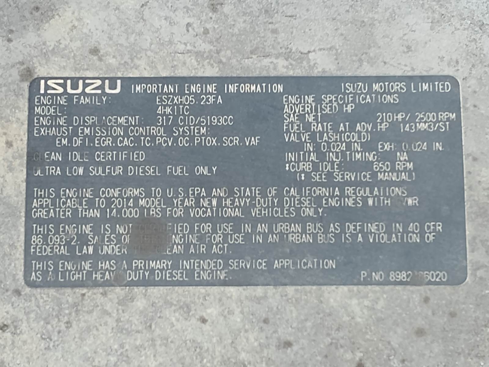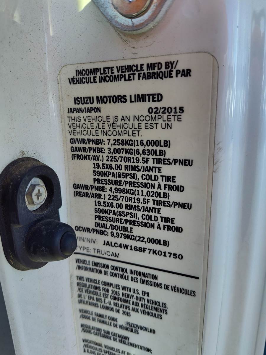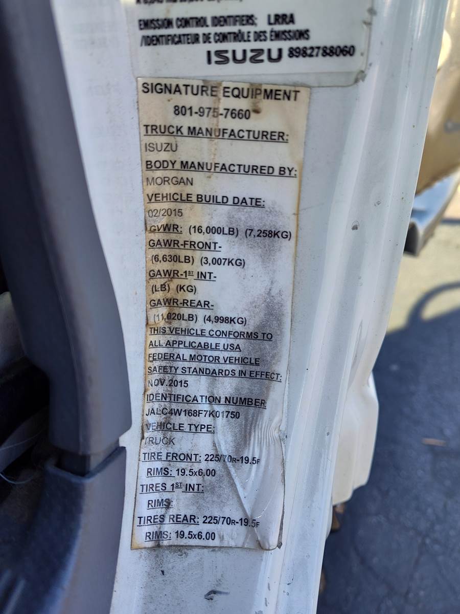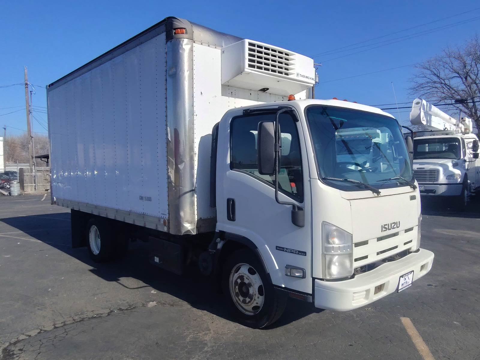2015 Isuzu NPR Reeger truck, is a clean unit with a16' Box and an aluminum grated floor, Thermo King. Roll up door, Aluminum ramp, AM/FM/CD Radio. DPF DEF, 4HK1TC Motor with 210 H.P. Automatic transmission. 6,630 Front, 11,620 Rear, 16,000 GVWR. 225/70R19.8 Rubber. Steel wheels.