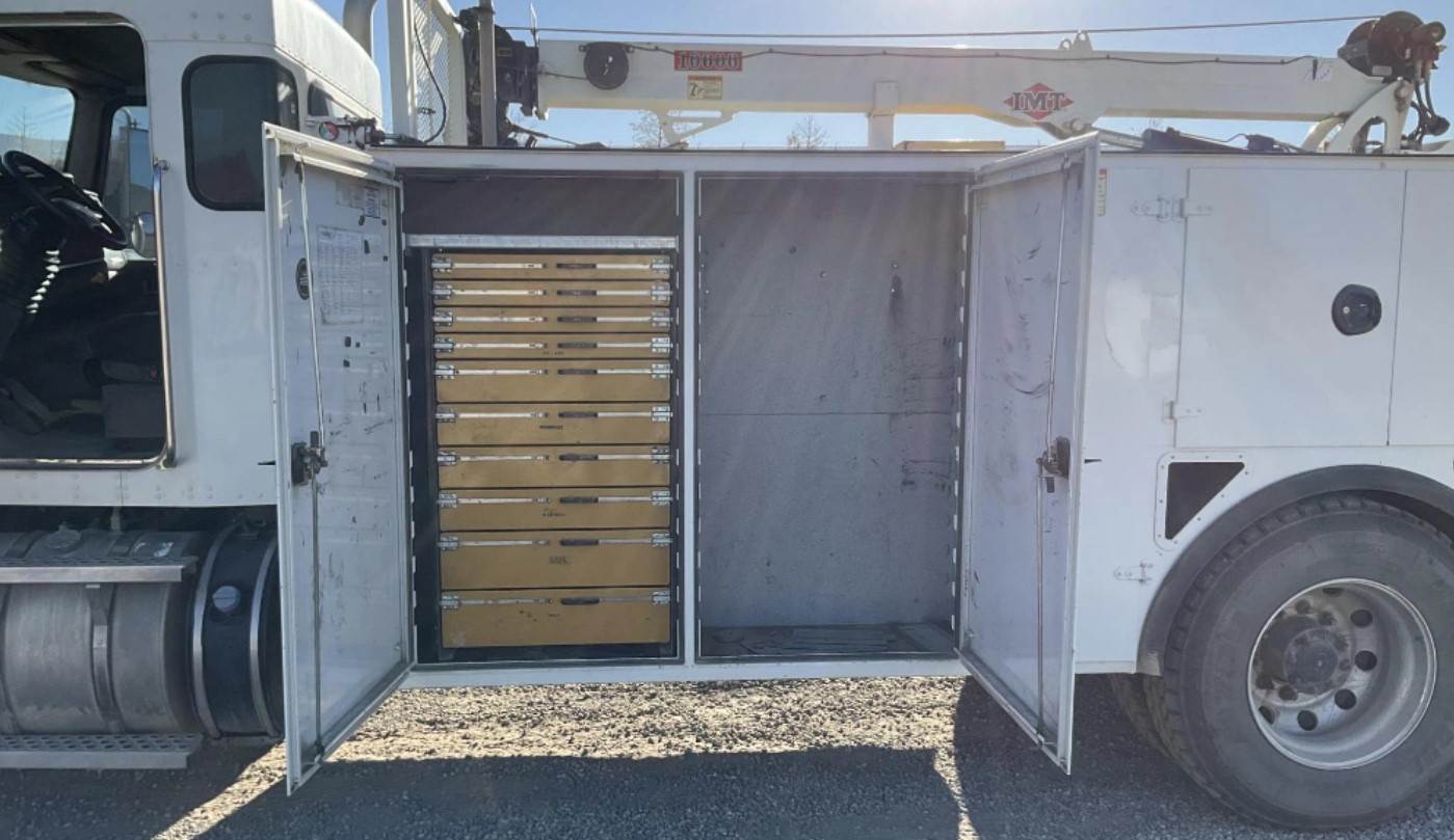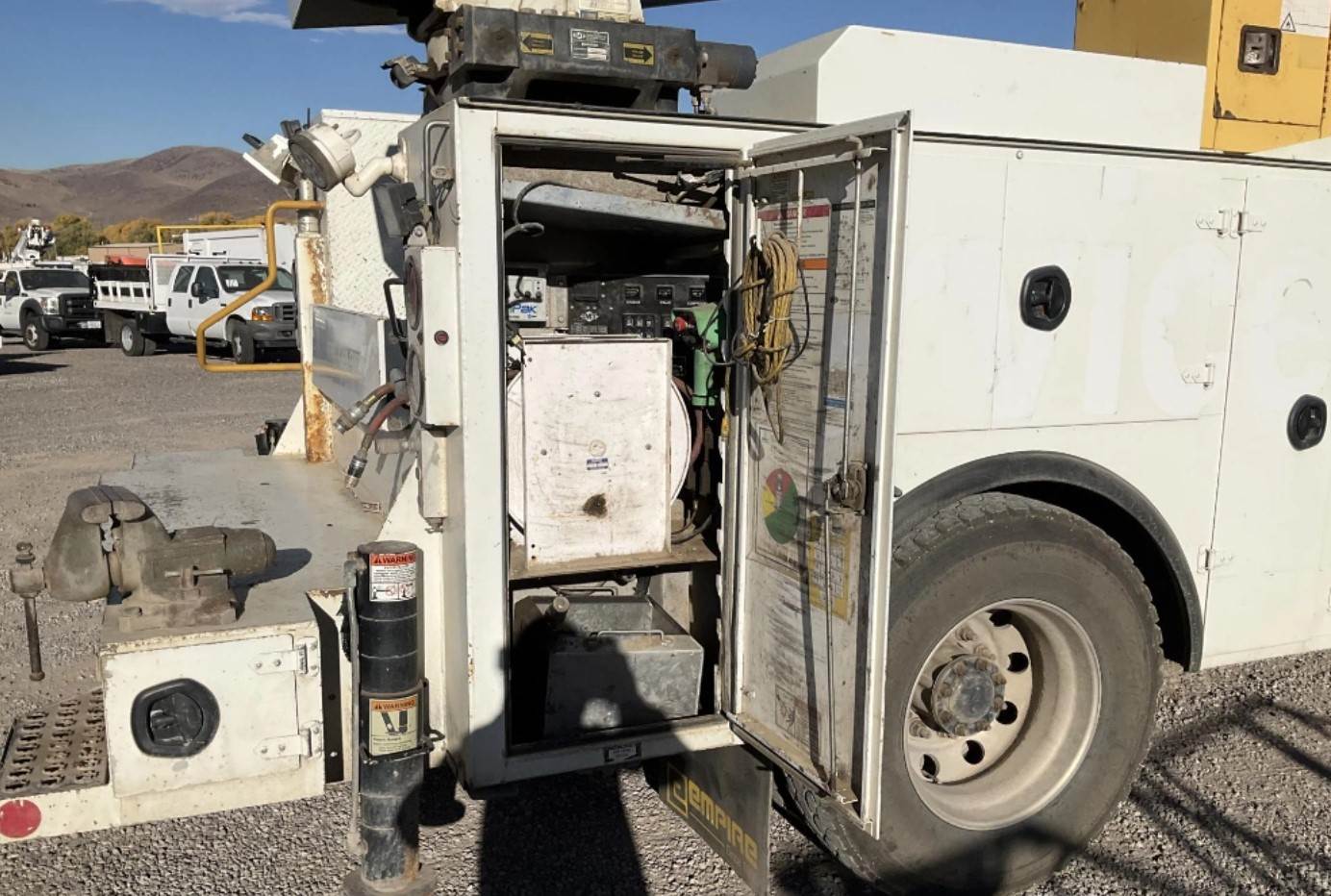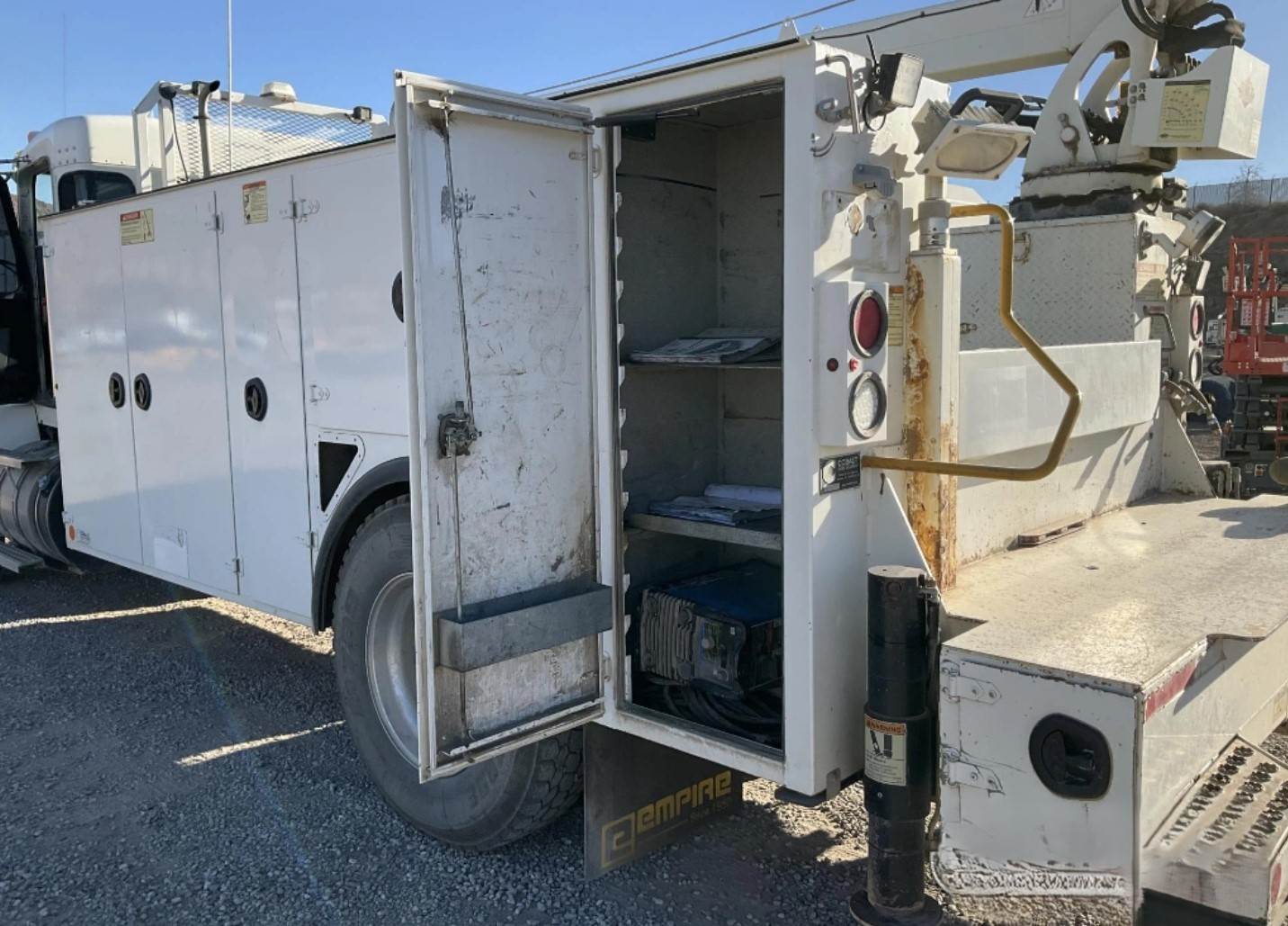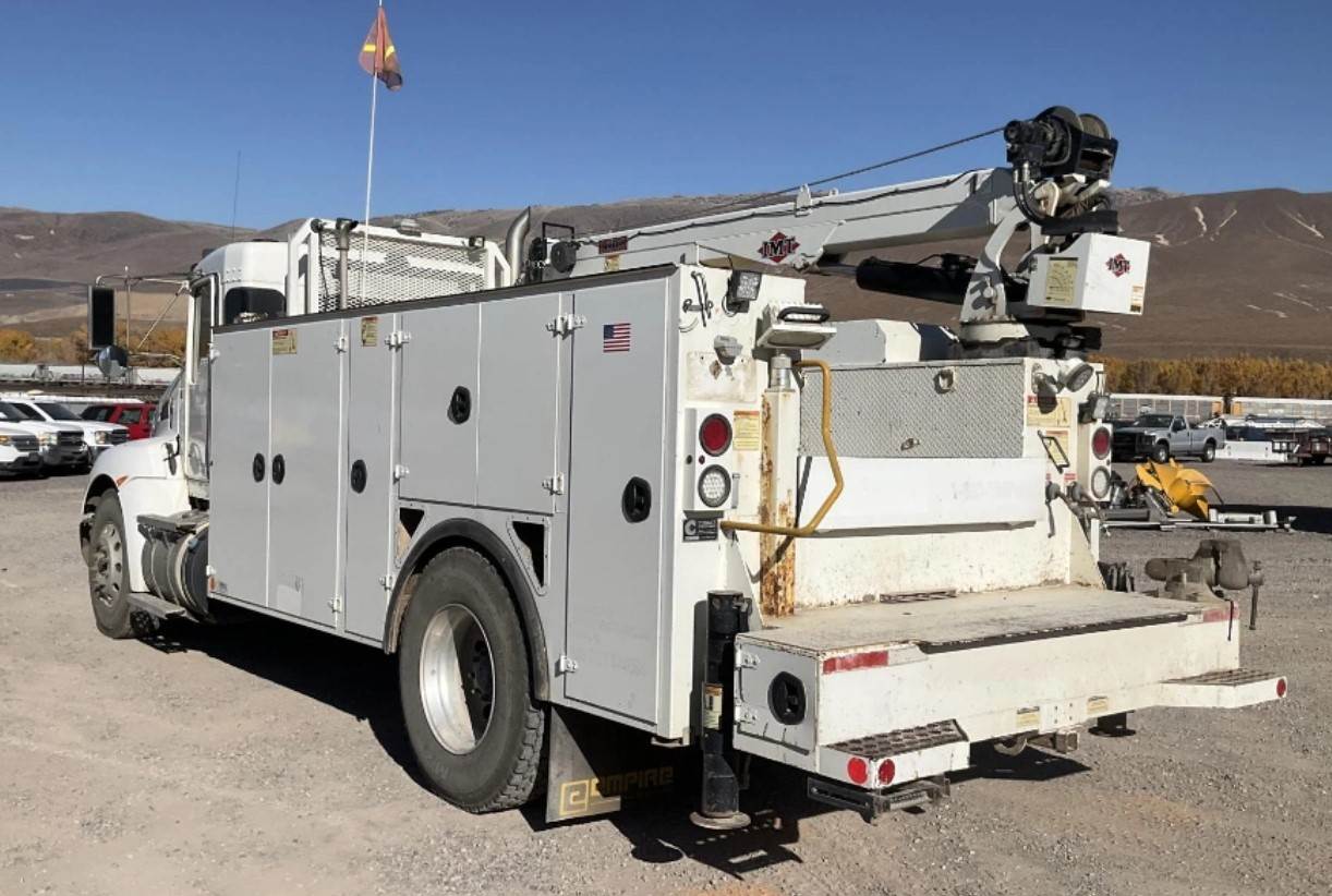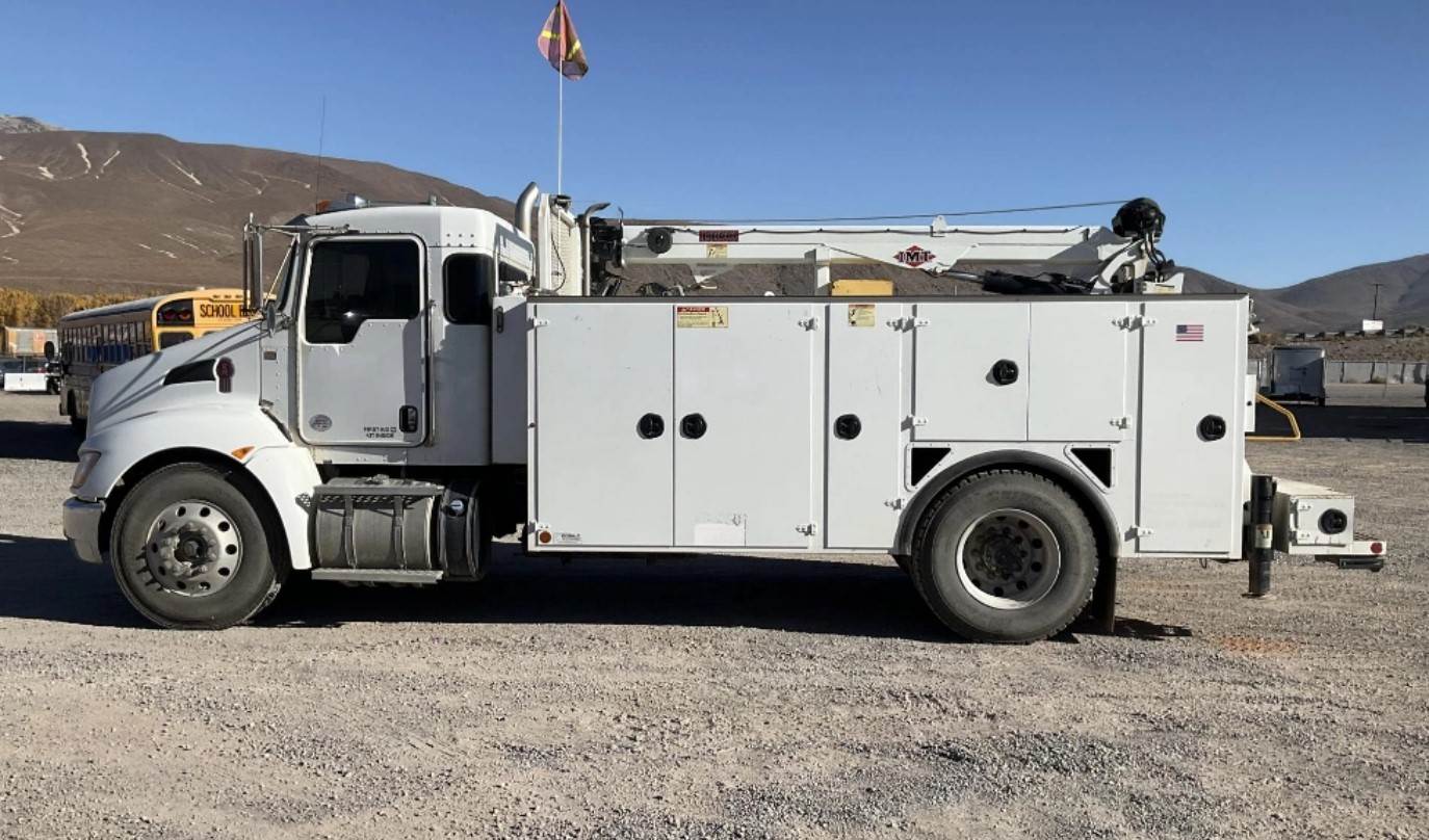 Here is a LOW MILES, very clean Mechanic's truck. 14' IMT body 10,000 lb crane, Enpak system. Automatic transmission. 12,000 lb front axle. 21,000 lb rear axle. 33,000 G.V.W.R. Power steering, A/C. AM/FM/CD Radio. Aluminum wheels, Aluminum fuel tank DPF DEF. Right hand vertical stack. 10 drawer tool cabnet. bot bin. Miller Maxstar 210 Series welder w/ Leads Work bench bumper with vise. 11R22.5 tires 80% or better.